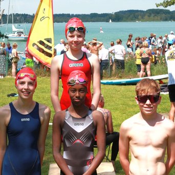 Bayerische Freiwassermeisterschaften 2024 in Inning mit vier Clubschwimmern