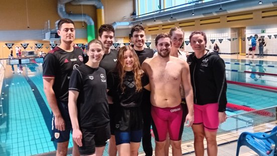 Thomas Chang (AK 25) erschwamm sich jeweils einmal Gold (100B), Silber (100L) und Bronze (100B offene Klasse), Julia Grasser (AK 25) holte sich Gold über 100m Schmetterling und Nina Rauh (AK 40) gewann Silber auf 200m Freistil. Die 4x50m Lagen- und Freistilstaffeln der Damen und Herren erkämpften sich insgesamt 1x Gold, 1x Silber und 2x Bronze in der Gruppe B (AK 100 - 119).