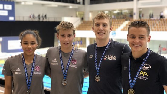 Die erste Medaille für den Landesstützpunkt Nürnberg kann Robin aus dem Becken fischen. Mit einer Silbermedaille und einer neuen persönlichen Bestzeit von 2:03,71 im Gepäck kann Robin nach den 200m Schmetterling zufrieden in die nächsten Tage gehen.