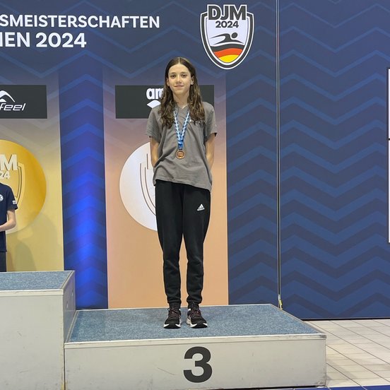 Valeria macht ihren Medaillensatz komplett und kann ebenfalls als 3. Anschlagen. In 2:42,77 schwimmt sie zur Bronzemedaille.