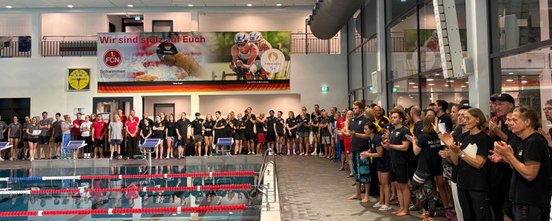 Der 1.FCN Schwimmen e.V. stellte beim Landesentscheid am 26.10.2025 unter Beweis, dass er sich einen Platz unter den besten Mannschaften Deutschlands verdient hat und qualifizierte sich als 18. von 24 Mannschaften souverän für den Bundesentscheid. Die Freude war riesig, denn so konnte man nicht nur zum ersten Mal am Bundesentscheid teilnehmen, sondern auch noch vor heimischer Kulisse schwimmen. Am Ende des Tages erzielten Valentin Bößenecker, Thomas Chang, Oliver Feickert, Julia Grasser, Philipp Harig, Benno Hingler, Patricia Irmer, Frauke Lührs, Ronja Rohrmoser, Bastian Schorr und Claus Swatosch stolze 17131 Punkte. Zudem konnte sich der Bayerische Schwimmverband davon überzeugen, dass der 1.FCN Schwimmen e.V. das entgegengebrachte Vertrauen für eine erfolgreiche Umsetzung des Landesentscheides nutzte und auch dem Bundesentscheid einen würdigen Rahmen unter weiß-blauer Schirmherrschaft geben wird.