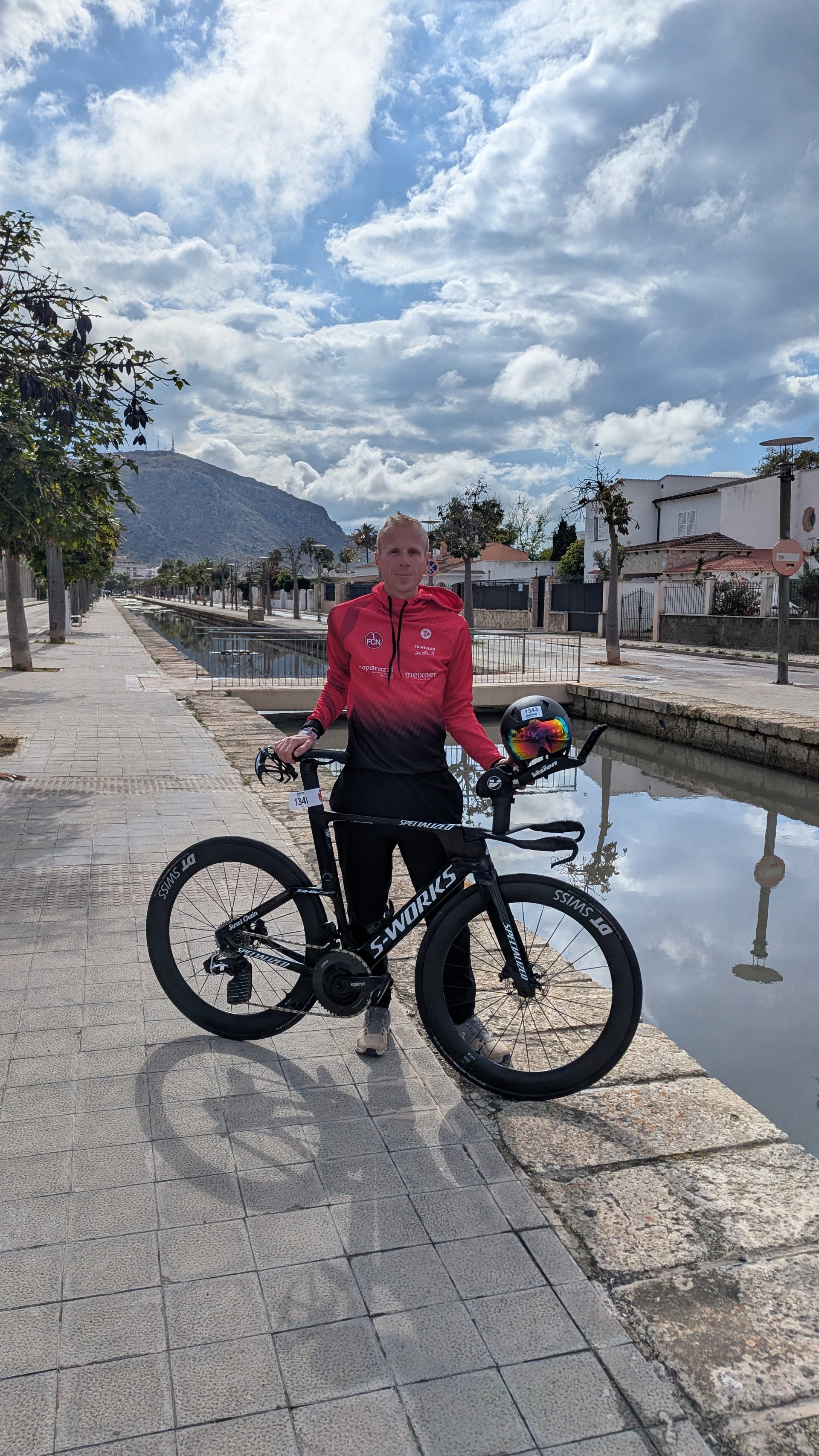 Perfekte Bedingungen: klarer Himmel, Sonne satt und kaum Wind. 1,9 km Schwimmen in der traumhaften Bucht von Alcudia bei 15 Grad – danach ging’s richtig zur Sache! 90 km mit 900 Höhenmetern durchs Tramuntana-Gebirge: über den Coll de Femenia, Coll de la Batella und dann mit Highspeed zurück über Muro & Sa Pobla nach Alcudia. Zum Schluss 21 flache Laufkilometer entlang der Promenade – Gänsehaut beim Zieleinlauf direkt am Strand!