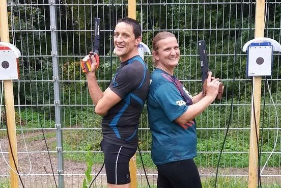 Alle Widrigkeiten schreckten aber Alice Schmidkunz und Marcus Schattner vom 1. FCN Schwimmen nicht davor zurück, beim letzten Wettkampf des Jahres zu starten. Beide hatten sich wochenlang auf die deutschen Meisterschaften im Triathle (4 x Schießen-Schwimmen-Laufen) in Weiden vorbereitet, doch dieser Wettkampf musste dann kurzfristig abgesagt werden, da beim Austragungsort die Infektionszahlen stark angestiegen waren. Jetzt wollten die beiden ihre Form dann wenigstens beim Laser-Run (4 x Schießen-Laufen) testen.