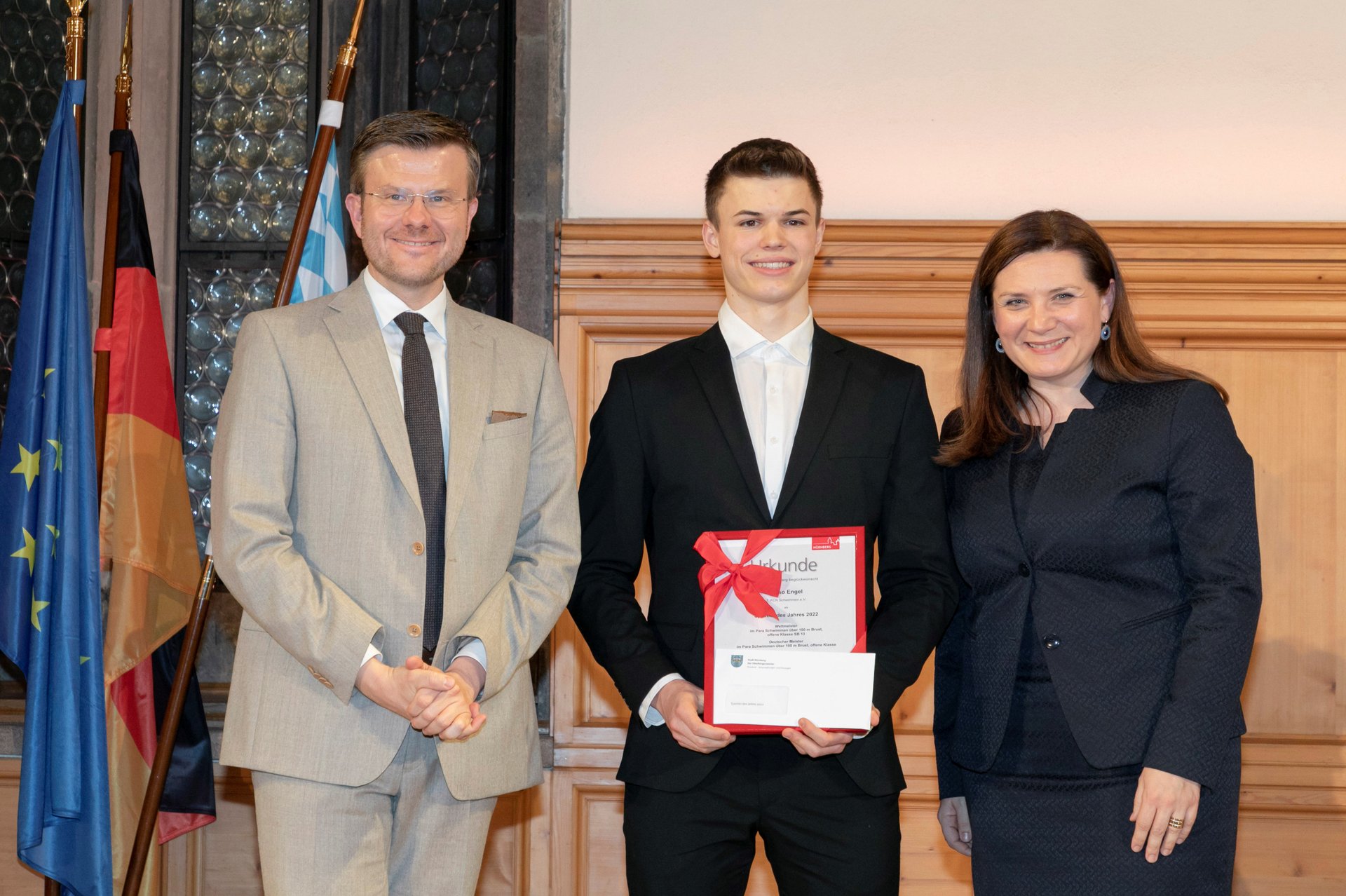 Die Stadt Nürnberg ehrt traditionell ihre erfolgreichsten Sportler im Rahmen eines Empfangs im Rathaussaal. Neben Deutschen Meistern werden auch die Teilnehmer an Europa- und Weltmeisterschaften, sowie Olympischen- und paralympischen Spielen geehrt. Schon seit Jahren sind die Schwimmer, Wasserballer und Triathleten des Clubs stark vertreten. So auch heuer, wo mit Taliso Engel, Arnold Zinoviev, Claudia Stich, Valentin Bößenecker, Claus Swatosch, Vladislav Romin, Alice Schmidkunz sowie der U14 Wasserballmannschaft die zahlenmäßig stärkste Vertretung wieder einmal von uns kam. Zudem wurde Taliso Engel nun bereits zum zweiten Mal nach 2019 zu Nürnbergs Sportler des Jahres gewählt, was vor ihm bislang nur die Eishockeylegende Patrick Reimer geschafft hat.