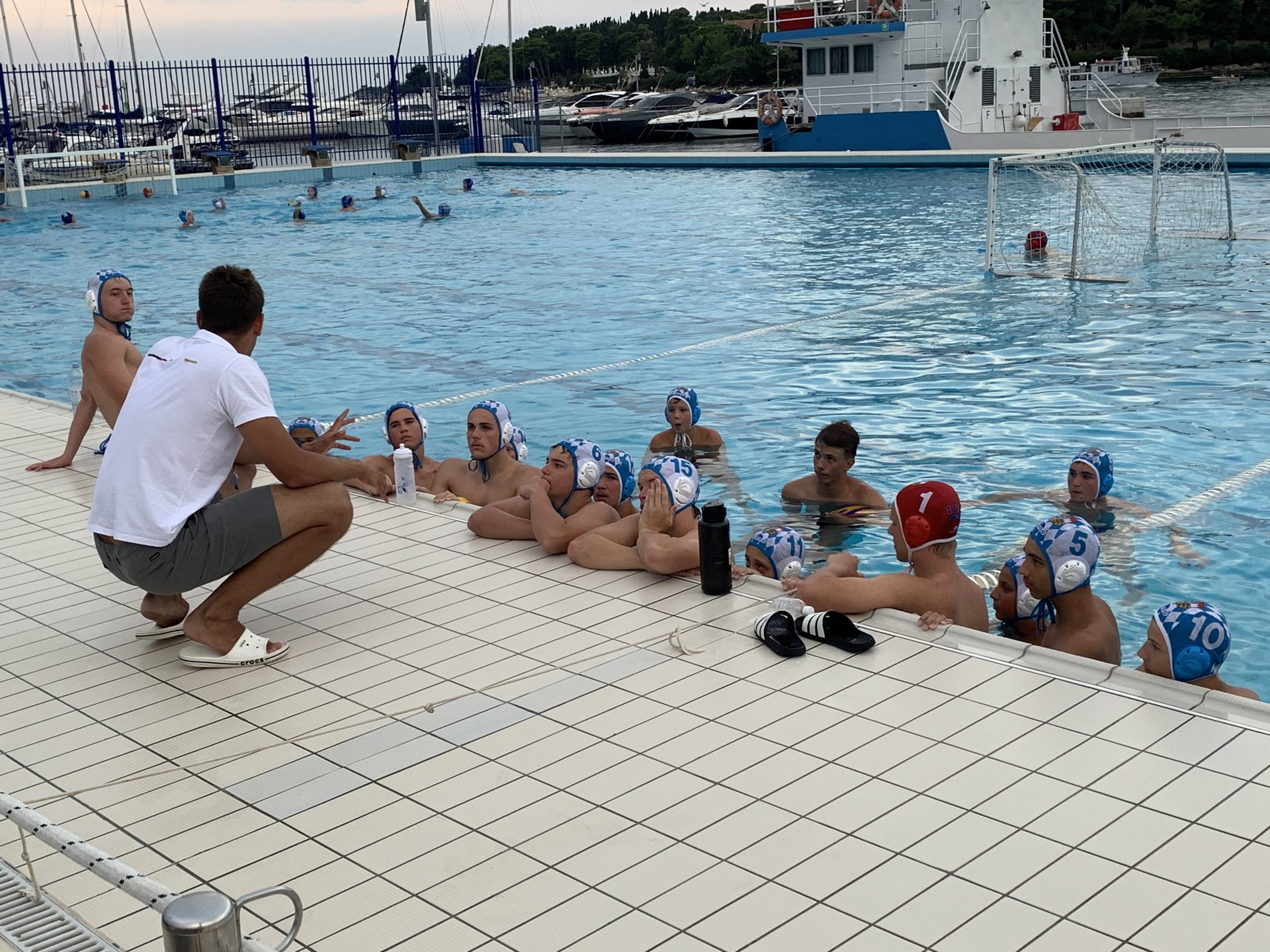 Bereits in den ersten Tagen hieß es: zusammenfinden, abstimmen, durchstarten – denn das Turnier war bereits für den 5. und 6. September angesetzt. Langstreckenschwimmen im Meer, Landtraining am Morgen und Jogging am Küstenweg gestalteten das Training abwechslungsreich und rundeten die Trainingseinheiten im Wasser ab. Im Freiwasserfeld des lokalen Wasserballvereins in Opatija arbeiteten die Jungs an Technik und Taktik, das Erlernte wurde abends in Freundschaftsspielen auf die Probe gestellt und weiter verbessert.