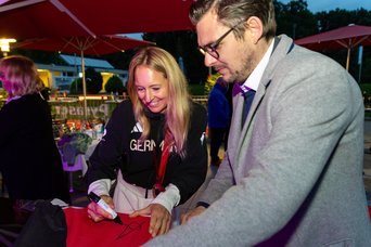 Das Ambiente hat gepasst, der rote Teppich, die riesige Fotowand, die olympische Musik und nicht zuletzt ein tolles Publikum – nur der Sonnenschein hat gefehlt. Aber mit Anja, Maria und Taliso kamen drei strahlende Gesichter ins Clubbad, die das schlechter Wetter vergessen ließen. Vom Nachwuchsschwimmer bis hin zur Prominenz aus Sport, Politik und Wirtschaft war alles vertreten. Auch das Funkhaus Nürnberg und Franken TV waren mit Teams vor Ort.