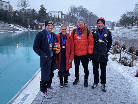 Und nicht nur die lückenlose Teilnahme sei hier zu nennen sondern auch die exzellente Organisation und Vorbereitung jedes Jahr wieder durch das Veitsbad Team! Dieses Jahr gab es für das Austragungs-Team zudem die besondere Herausforderung durch zweistellige Minusgrade in den Nächten zuvor, weshalb das Becken von zentimeterdickem Eis befreit und immer wieder vor dem Zufrieren bewahrt werden musste. Das Ergebnis der harten Arbeit sah man an einem Hügel voller Eisplatten auf der Liegewiese!