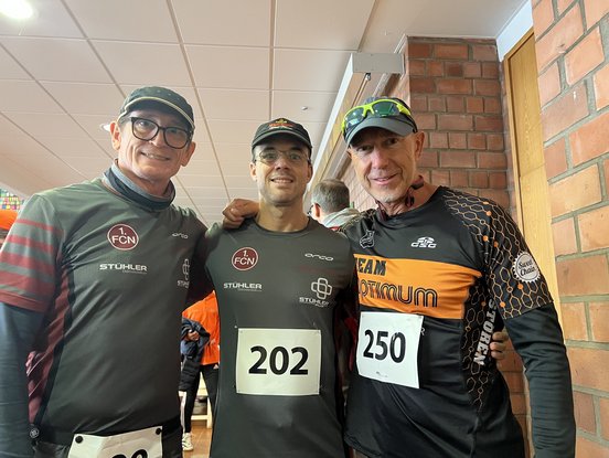 Fit halten über die Wintermonate: Marc Reed, Uwe Schumacher und Matthias Meixner beim Rednitzhembacher Kunstweglauf am 11.11.2023