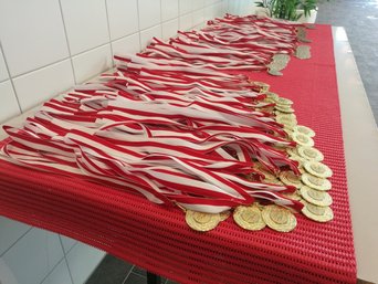 Knapp 700 Starts von 170 Schwimmerinnen und Schwimmern aus neun Schwimmvereinen sorgten dafür, dass das Wasser spritze und brodelte. Im kindgerechten Teil durften die Kleinsten mit fünf und sechs Jahren 25m Freistilbeine mit Brett sowie 25m ganze Schwimmlage in Brust, Rücken und Freistil schwimmen. Glücklicherweise hatten wir auch dieses Jahr wieder die immer seltener werdende, zeitaufwändige Zweistartregel in der Ausschreibung, und die im Bad gut versteckte Fehlstartleine wurde auch mehrfach ausgelöst. Am Ausgang beschwerte sich ein kleiner Schwimmer, es sei voll ungerecht, dass sein Kumpel fast jedes Mal eine Medaille erhielt, er aber nicht. Auf die Frage, ob es denn richtig wäre, wenn in der Schule jeder eine Eins bekäme, egal was er geleistet hat oder kann, meinte er dann aber, das wäre „auch doof“. Die Kleinen mussten lernen, dass nicht für jeden eine Medaille gibt.